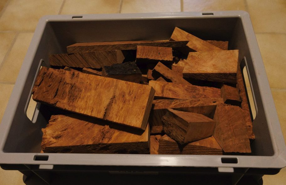 Im Grunde kaufe ich Holz auf drei verschiedene Arten: Kanteln/Blöcke, Bohlen und wie auf dem Foto abgebildet Reststücksortimente. Reststücke reichen für Holzschmuck völlig aus und haben den Reiz der Nachhaltigkeit, denn kein noch so kleines Stück wird weggeworfen.